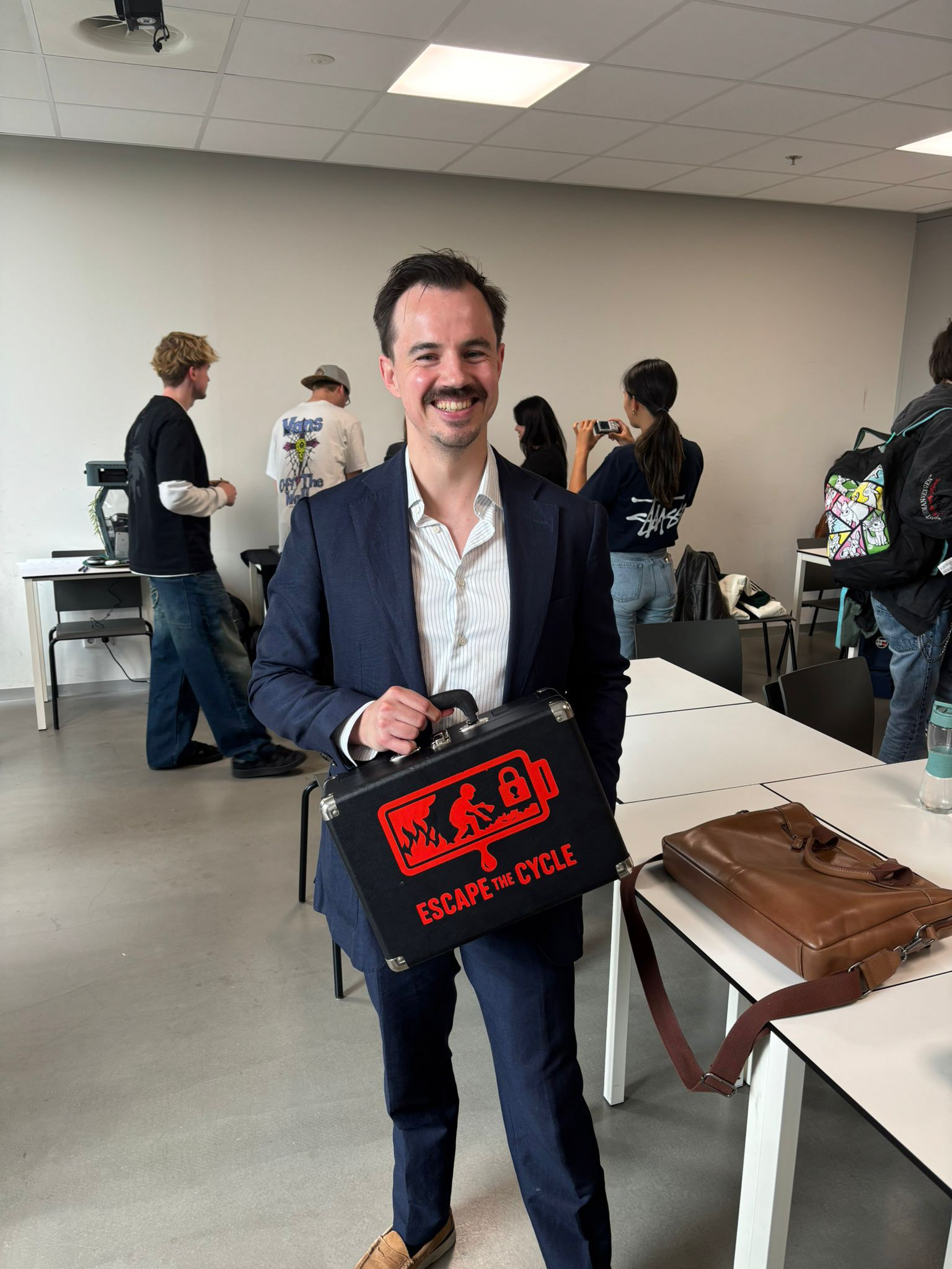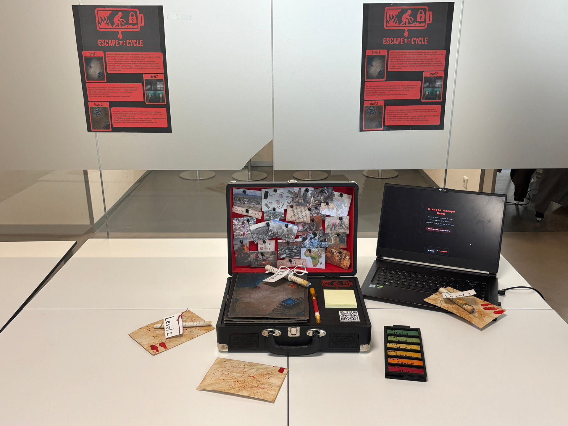 In plaats van een informatieve campagne of een poster, wilden wij een concept bedenken dat mensen het probleem niet alleen laat begrijpen, maar ook laat ervaren. Zo ontstond het idee voor een interactieve escape room-koffer: een fysieke ervaring waarin spelers stap voor stap de levenscyclus van een smartphone doorlopen.